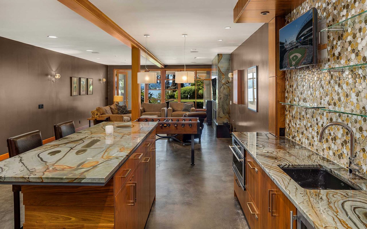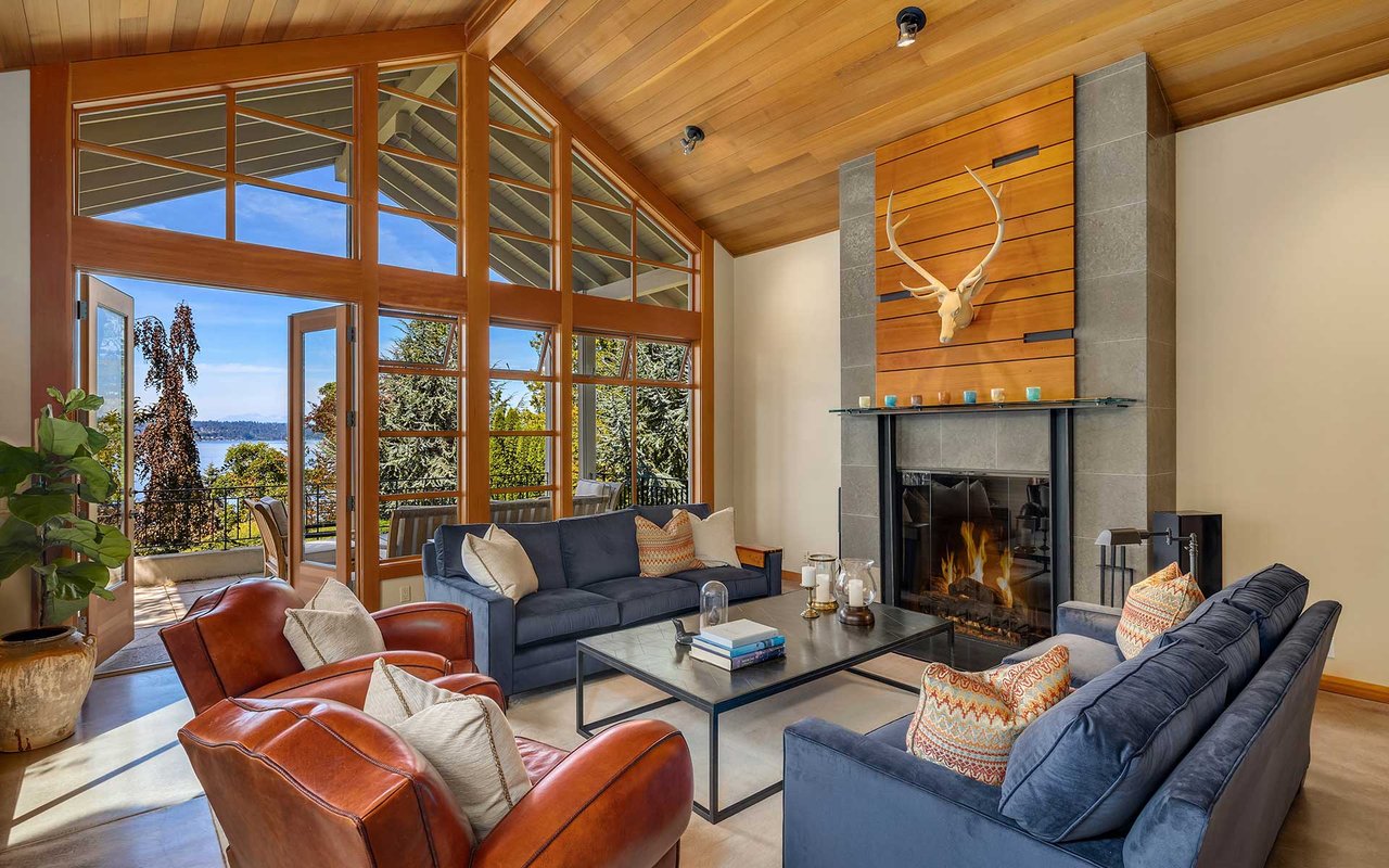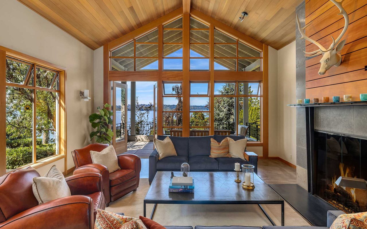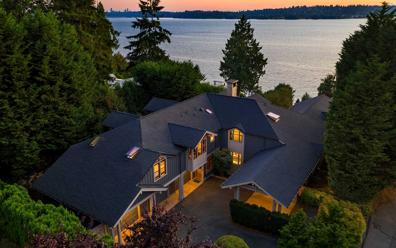 Nestled on a private lane West of Market, this Northwest Contemporary Craftsman is as modern as it is magical. Endless lake and mountain views greet you on each level, with a floor plan for those working and studying from home; ample areas for both Zoom calls and study halls. The gathering kitchen boasts luxe appliances, a massive island and multiple French doors out to the expansive view terrace with fireplace. The lower level is ready to host movie nights and Seahawks games w/kitchenette and more lake views.