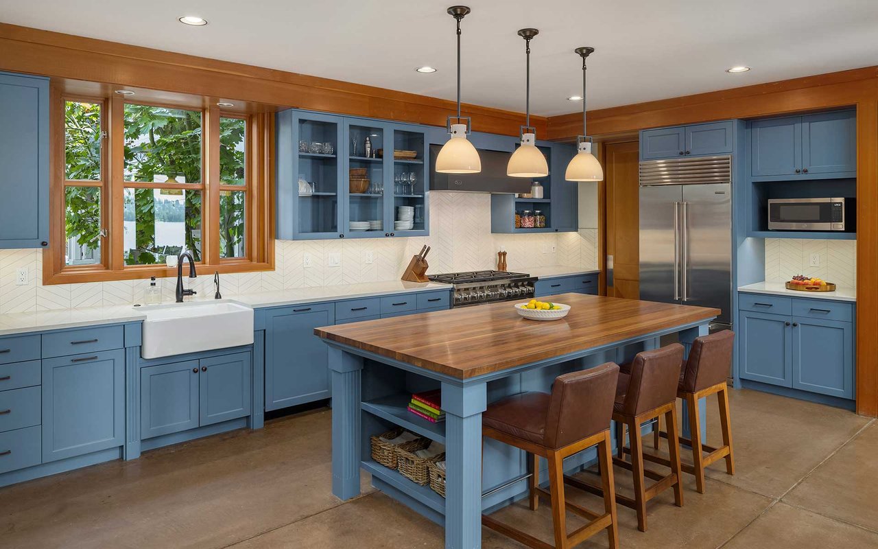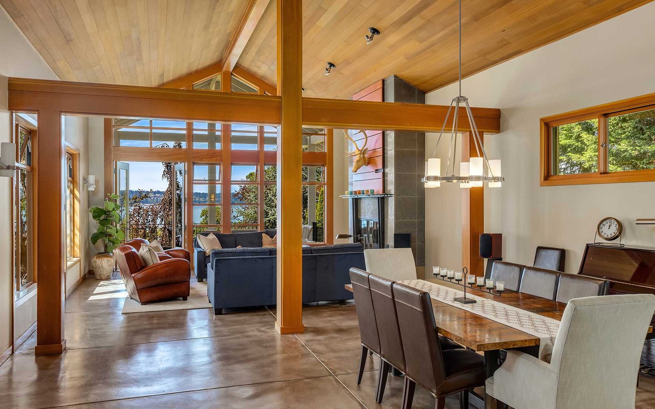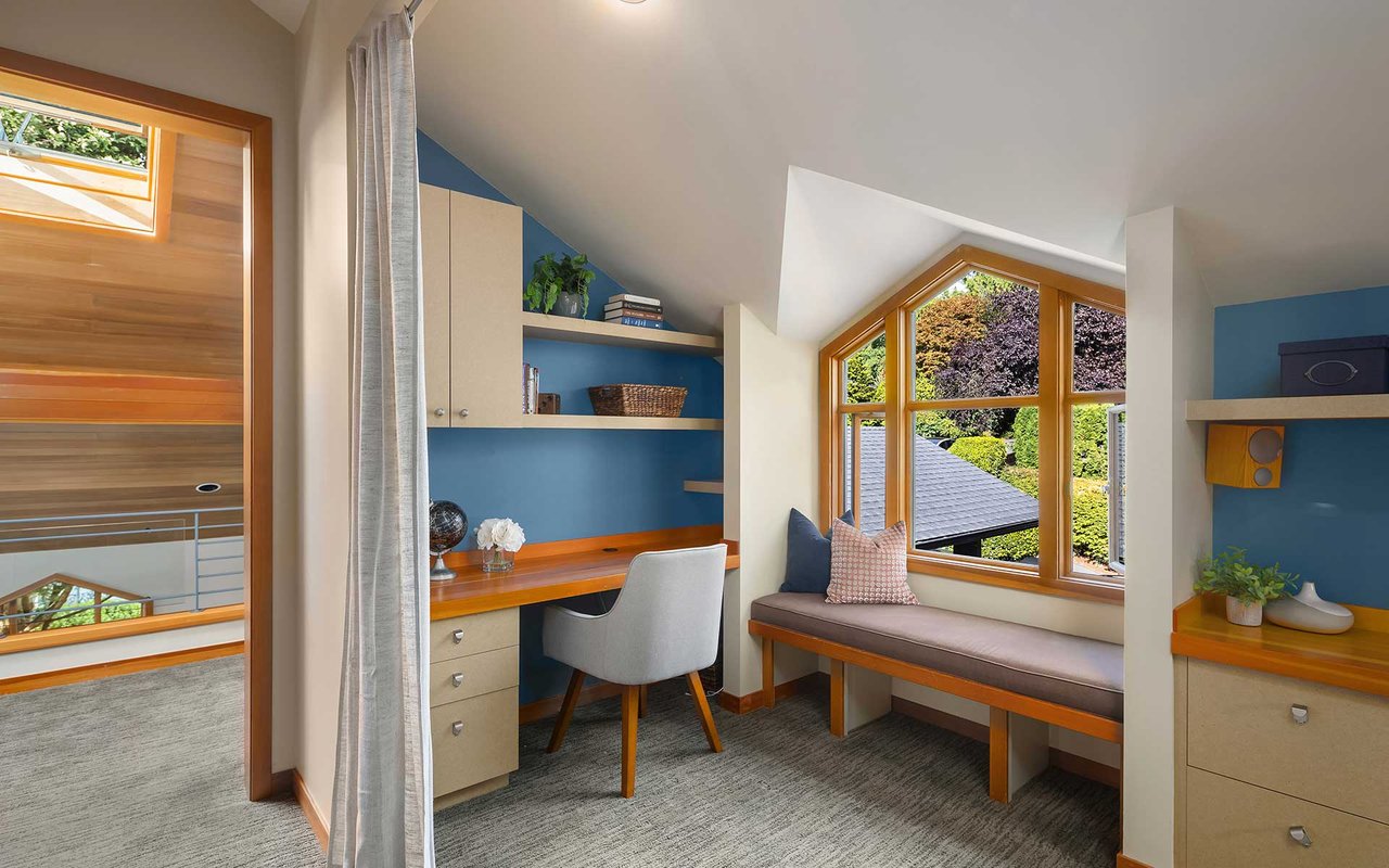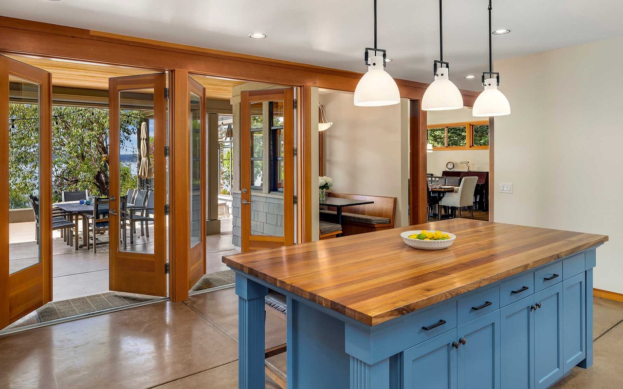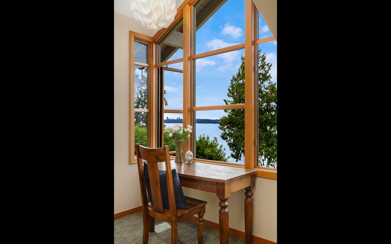 Nestled on a private lane West of Market, this Northwest Contemporary Craftsman is as modern as it is magical. Endless lake and mountain views greet you on each level, with a floor plan for those working and studying from home; ample areas for both Zoom calls and study halls. The gathering kitchen boasts luxe appliances, a massive island and multiple French doors out to the expansive view terrace with fireplace. The lower level is ready to host movie nights and Seahawks games w/kitchenette and more lake views.