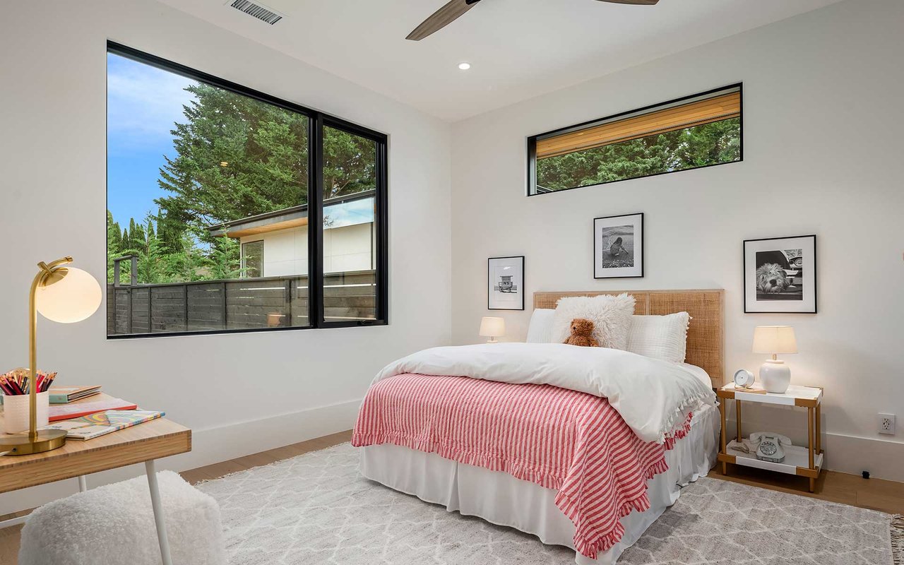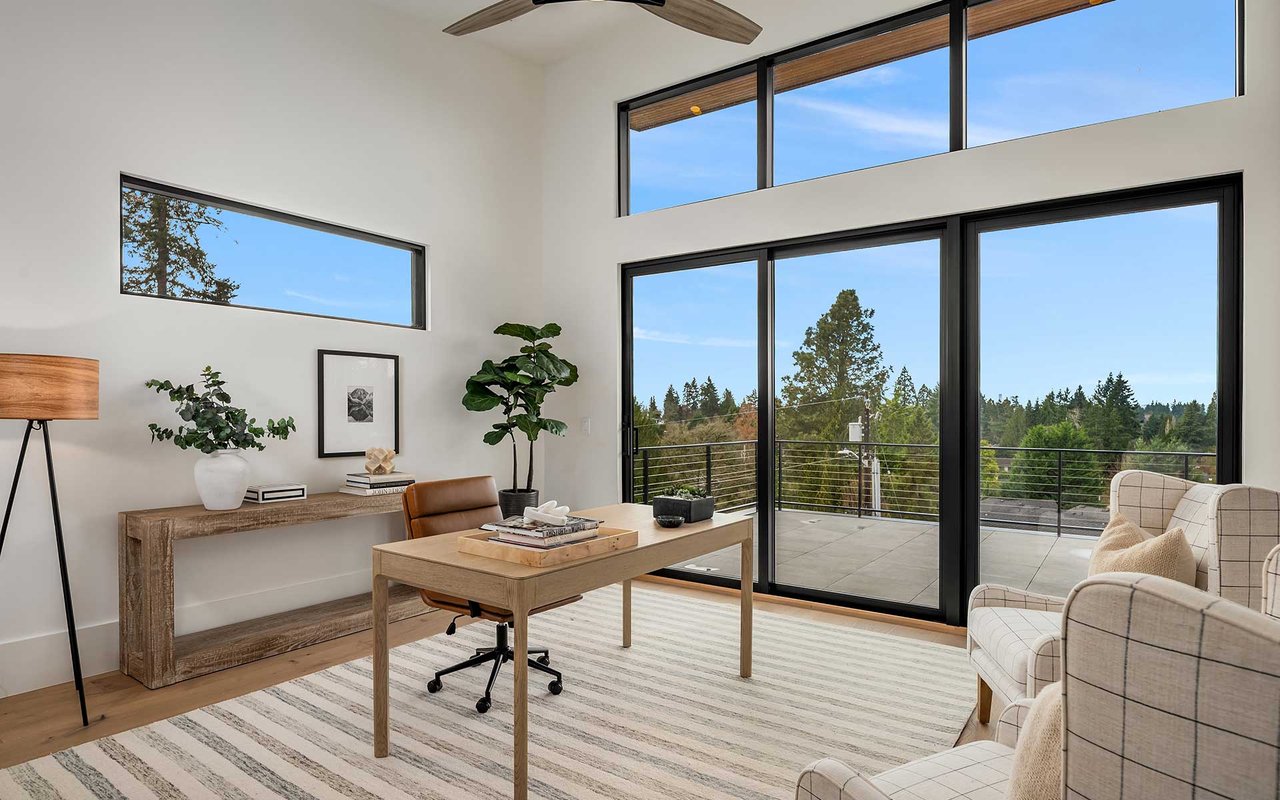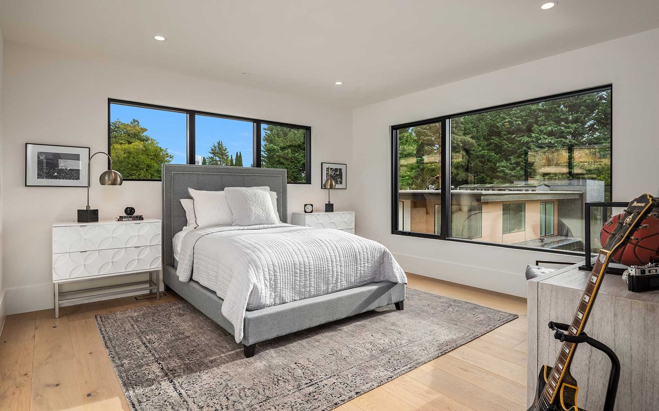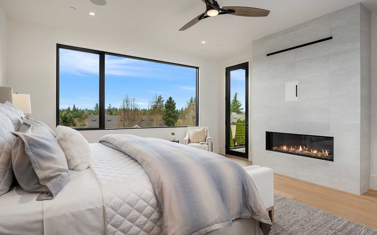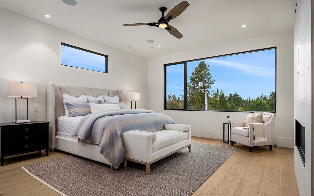 Attention to detail and craftsmanship are personified in this stunning new home built by respected local builder JBeloff Homes. Located down a private lane, this home is perched high to ensure privacy while giving you west facing, panoramic, horizon views making you feel like you are eye level with the Olympic Mountains. A beautiful combination of indoor and massive outdoor space allows you to squeeze every last moment of sunset year-round. Phenomenal bedroom layout with a spacious primary wing on the main floor with zero steps next to an elevator that services all floors. Upper floor has two gorgeous bedroom suites, one with west facing views and the other with downtown views surrounding a beautiful family room. Lower floor is wonderfully bright with high ceilings and an additional 3 large bedrooms, recreation room, secondary laundry, home theater, and flex room perfect for home gym, hobbies, and prewired for a golf simulator. Several options for den and home office. Natural light pours through near floor to ceiling windows that clears the mind and refreshes the soul. Sophisticated design elements hand chosen to be warm and welcoming. Secure private yard and gate ready for 360-degree security and peace of mind. Home has 3 car attached garage plus detached heated auto-salon perfect for a collector car, storage, or separate gym. Amazing location minutes to Overlake Golf & Country Club, Medina Elementary, St Thomas, 520, I-405, numerous parks, beaches, and downtown Bellevue.