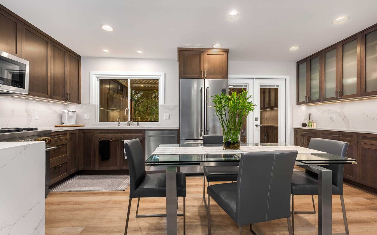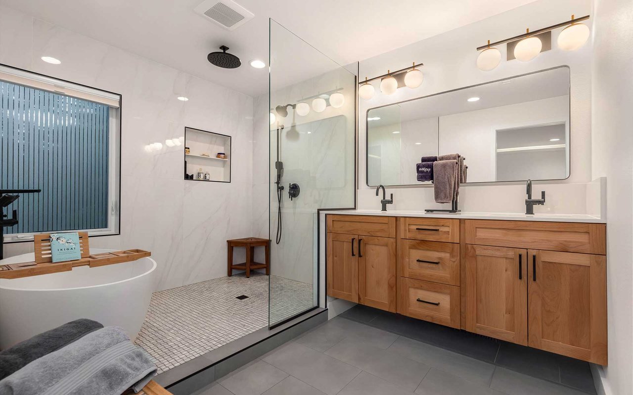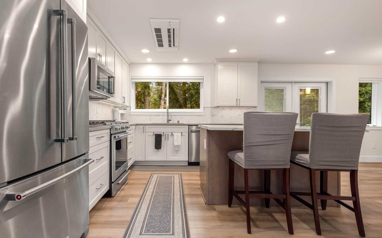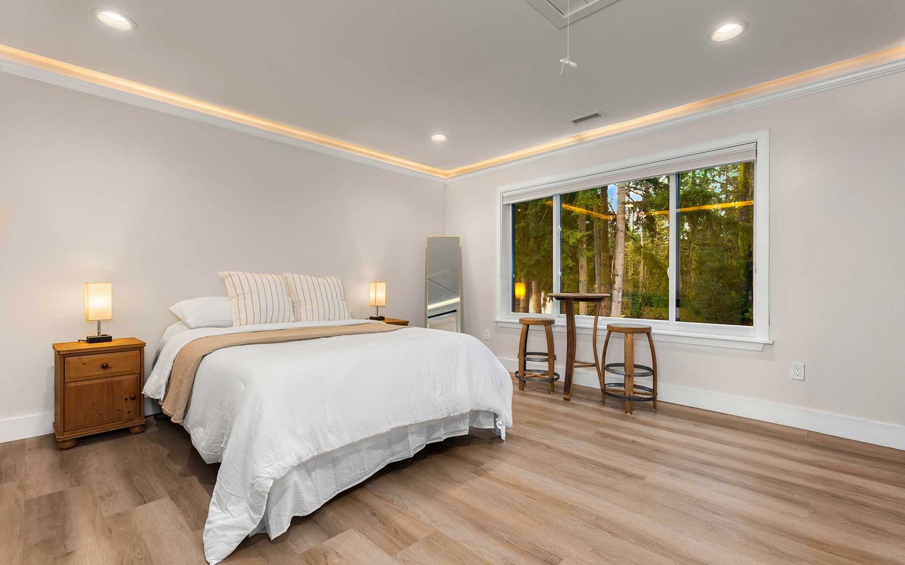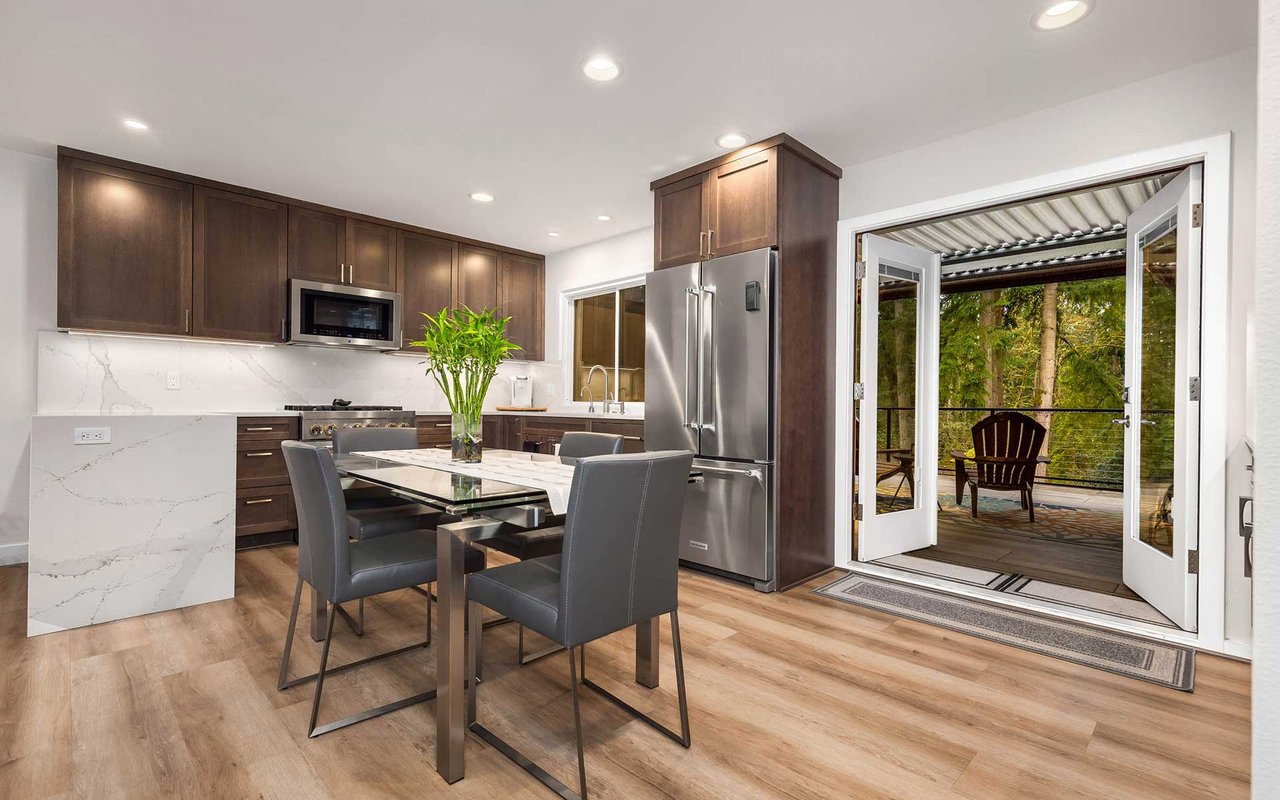 Tucked at the end of a quiet cul-de-sac in the coveted Northshore School District, this Bothell residence rests on a lush quarter-acre greenbelt, offering rare privacy and versatility with a fully permitted ADU. Thoughtfully curated updates and refined indoor-outdoor living create a move-in ready retreat suited for multigenerational living, income potential, or elevated entertaining. Light-filled main living spaces open to a showstopping covered patio featuring articulating louvers, automated screens, a high-output gas heater, and rich cedar accents. A pass-through bar connects seamlessly to the kitchen, creating an effortless year-round entertaining experience. Refreshed baths, a spacious primary suite, and tranquil tree-lined outlooks enhance the home’s sense of comfort and seclusion. The lower-level ADU offers a private, self-contained living experience with a full kitchen, laundry, flexible bonus space, and separate entrance—ideal for guests or premium rental income. Outdoors, enjoy professionally designed landscaping, and a 200 sqft future-ready pad for a luxury outdoor kitchen, or studio. Ideally located near parks, trails, and commuter routes, this is a rare blend of privacy, sophistication, and modern Northwest living.