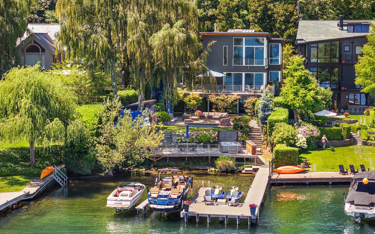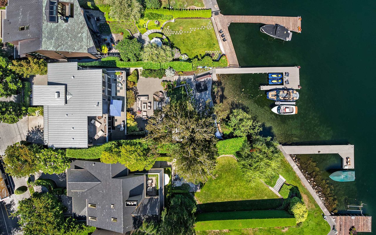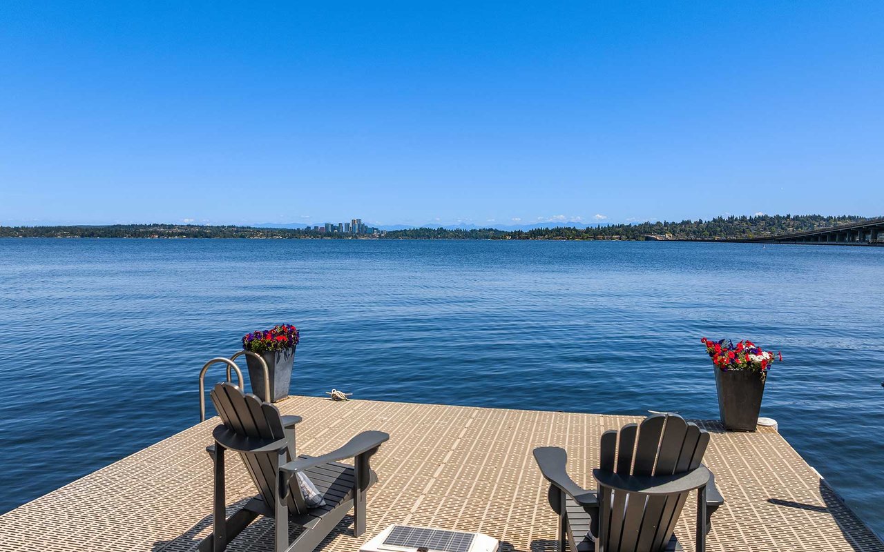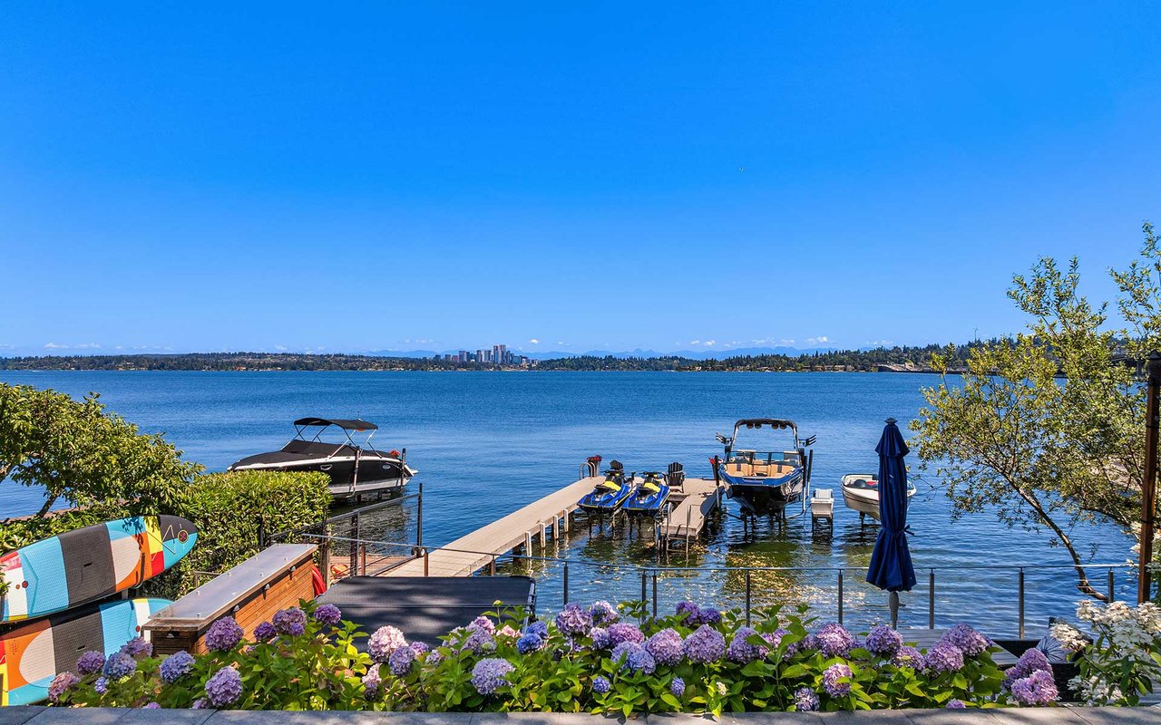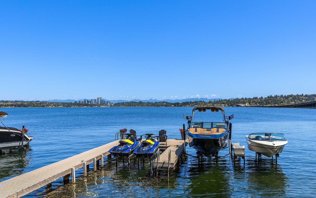 Discover life on the lake at this gated Contemporary masterpiece in the heart of Leschi. With views from nearly every room, floor-to-ceiling windows and sliders connect the interior living spaces to the outdoors and the spectacular views of the lake and Bellevue skyline. The open floor plan allows for effortless entertaining and everyday living. The upper level primary retreat is filled with light and sweeping views; a simply breathtaking refuge with a private view terrace and spa-like bath. The lower level offers two bedroom ensuites, exercise room, wine cellar and media room with wet bar. An incredible lake lifestyle includes a private dock with two lifts + jet ski lifts, expansive patios/decks, outdoor kitchen and hot tub—this is a home for gathering with friends and loved ones. All this in an ideal locale—stroll to Starbucks, Leschi Market, Daniel’s, the marina and sunny parks.