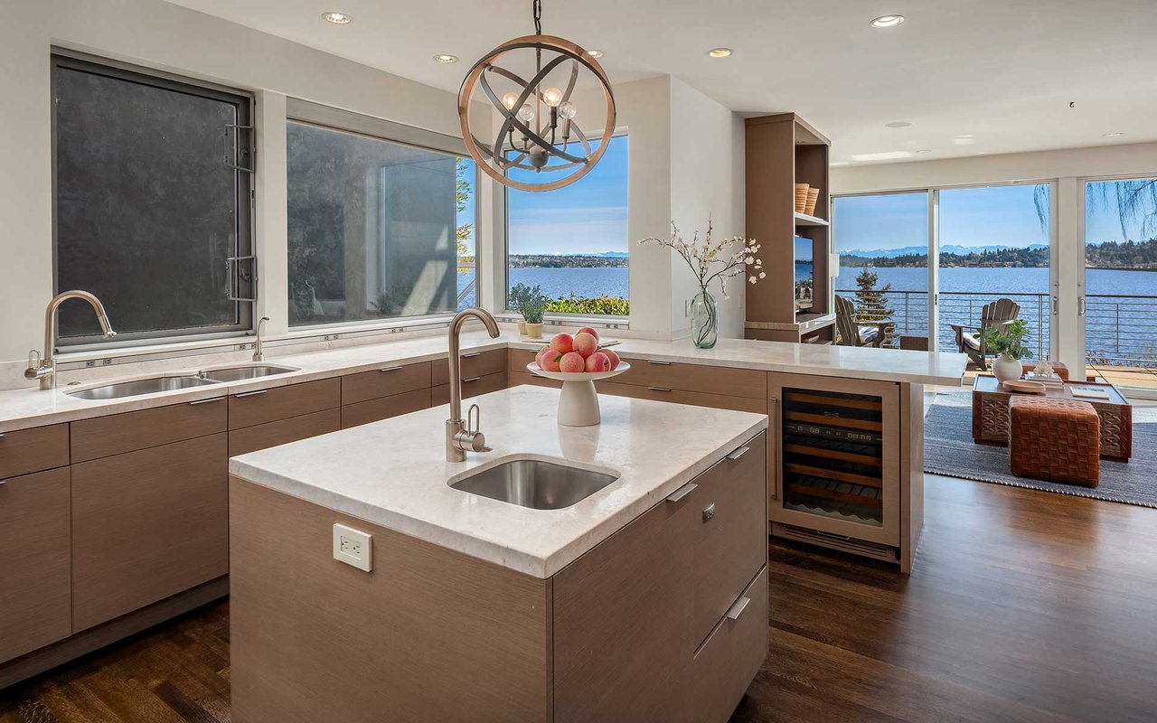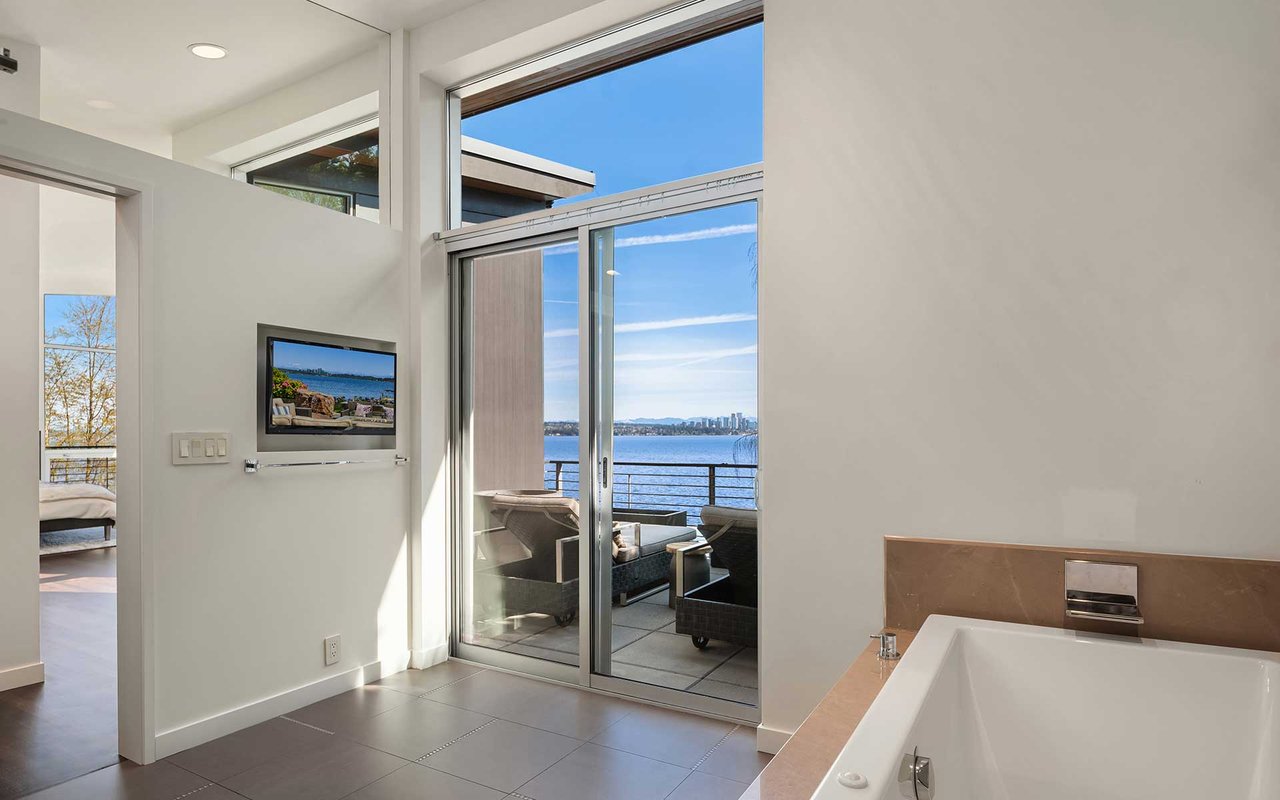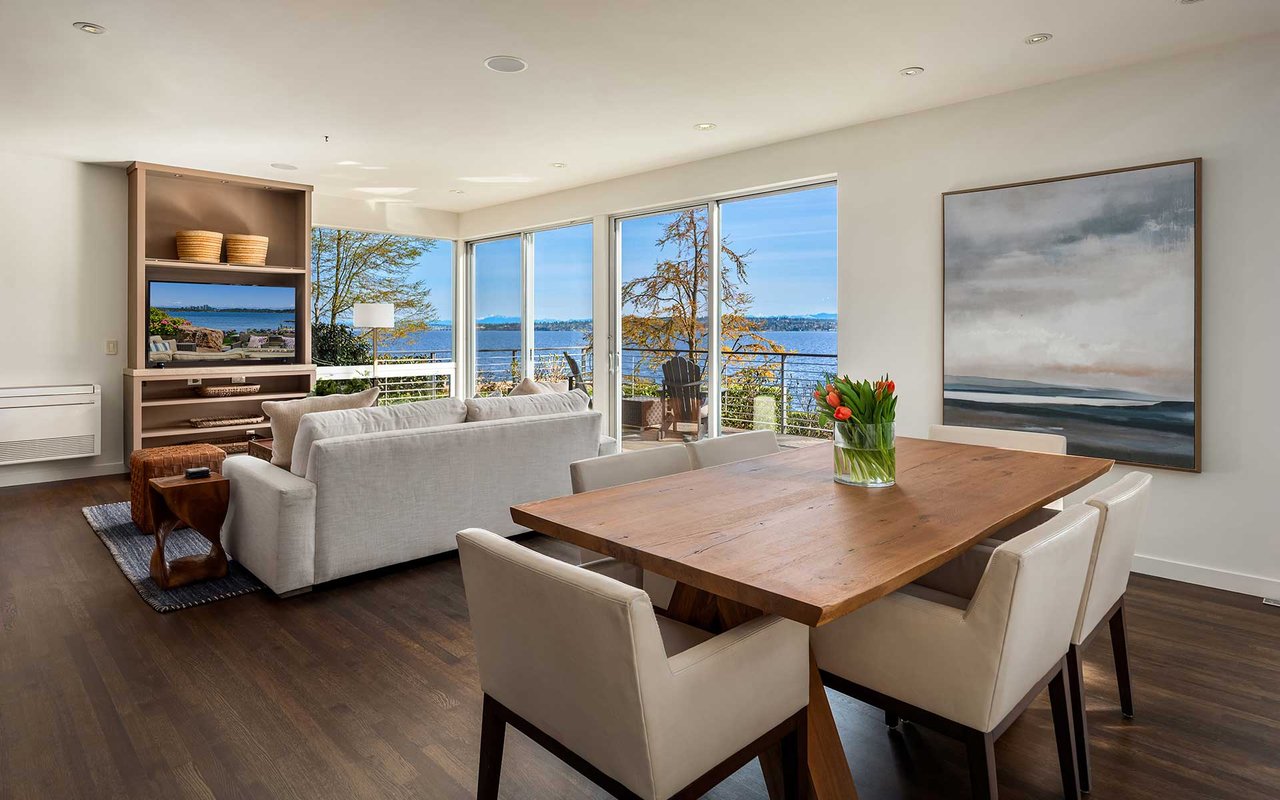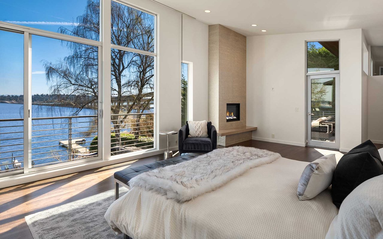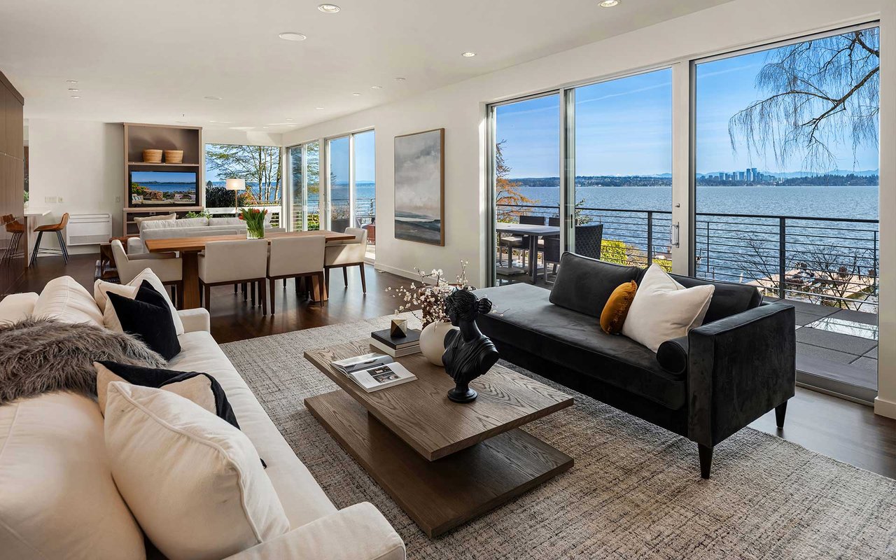 Discover life on the lake at this gated Contemporary masterpiece in the heart of Leschi. With views from nearly every room, floor-to-ceiling windows and sliders connect the interior living spaces to the outdoors and the spectacular views of the lake and Bellevue skyline. The open floor plan allows for effortless entertaining and everyday living. The upper level primary retreat is filled with light and sweeping views; a simply breathtaking refuge with a private view terrace and spa-like bath. The lower level offers two bedroom ensuites, exercise room, wine cellar and media room with wet bar. An incredible lake lifestyle includes a private dock with two lifts + jet ski lifts, expansive patios/decks, outdoor kitchen and hot tub—this is a home for gathering with friends and loved ones. All this in an ideal locale—stroll to Starbucks, Leschi Market, Daniel’s, the marina and sunny parks.