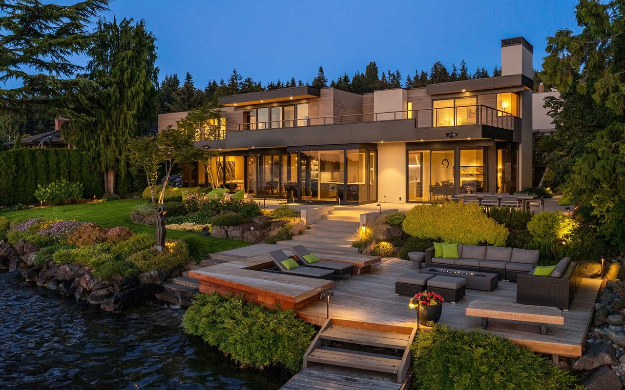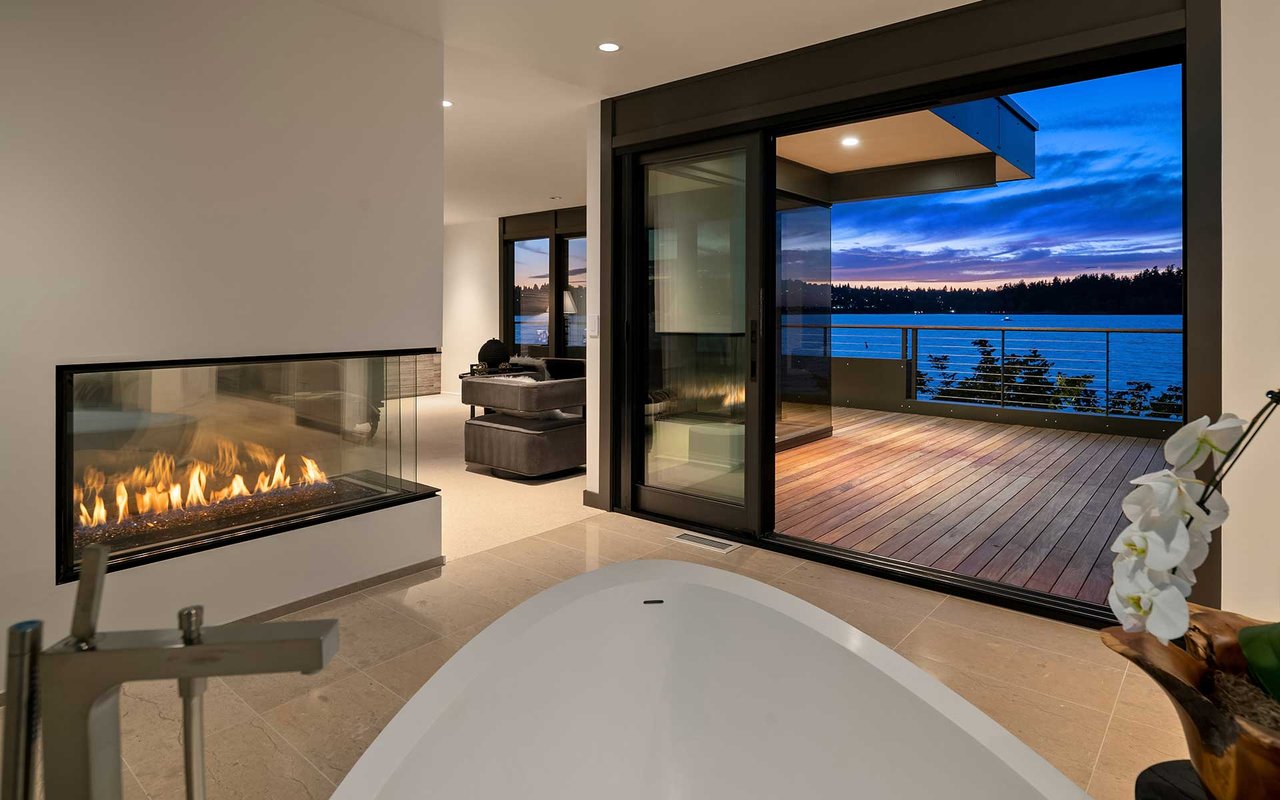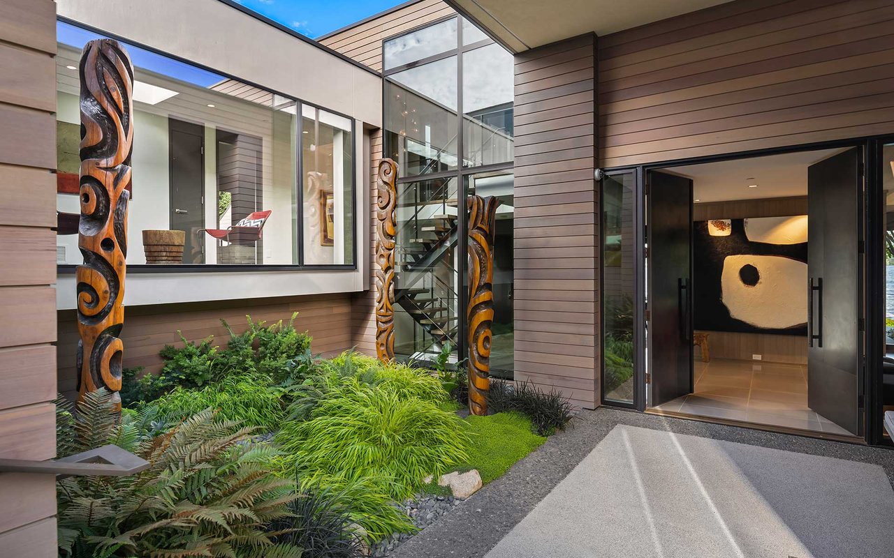 This Northwest Contemporary on 118 feet of west-facing lakefront was thoughtfully and meticulously renovated to capture the beauty of the mid-century architecture and its surroundings—where landscape, light and craftsmanship blend seamlessly. The carefully curated 2017 & 2021 renovations were a collaboration of the owners, Stuart Silk, Studio AM Architecture-Interiors, ESMB Inc., and Sander Groves Landscape. Natural materials define the architectural palette, creating a warm, inviting atmosphere. Expansive glass exposure and frameless corner windows allow sweeping views of the ever-changing lake vistas and a close connection to the natural scape. An open floor plan is ideal for effortless entertaining and everyday living, while carefully considered interiors provide quiet spots for reflection. The 19,546 square foot lot is private, peaceful and lush, and a private dock with two lifts allow you to take advantage of everything you love about lake life. This is the Island lake house you’ve been waiting for...100% move-in ready.