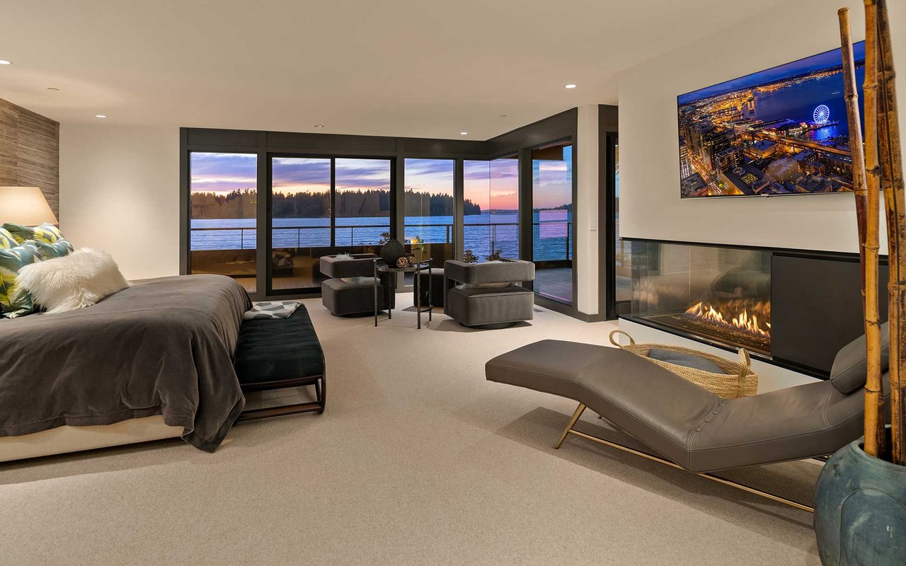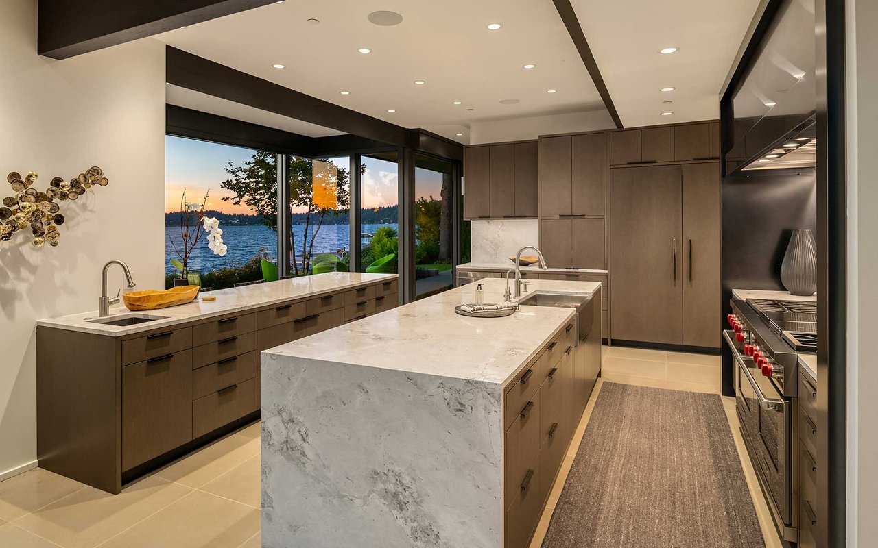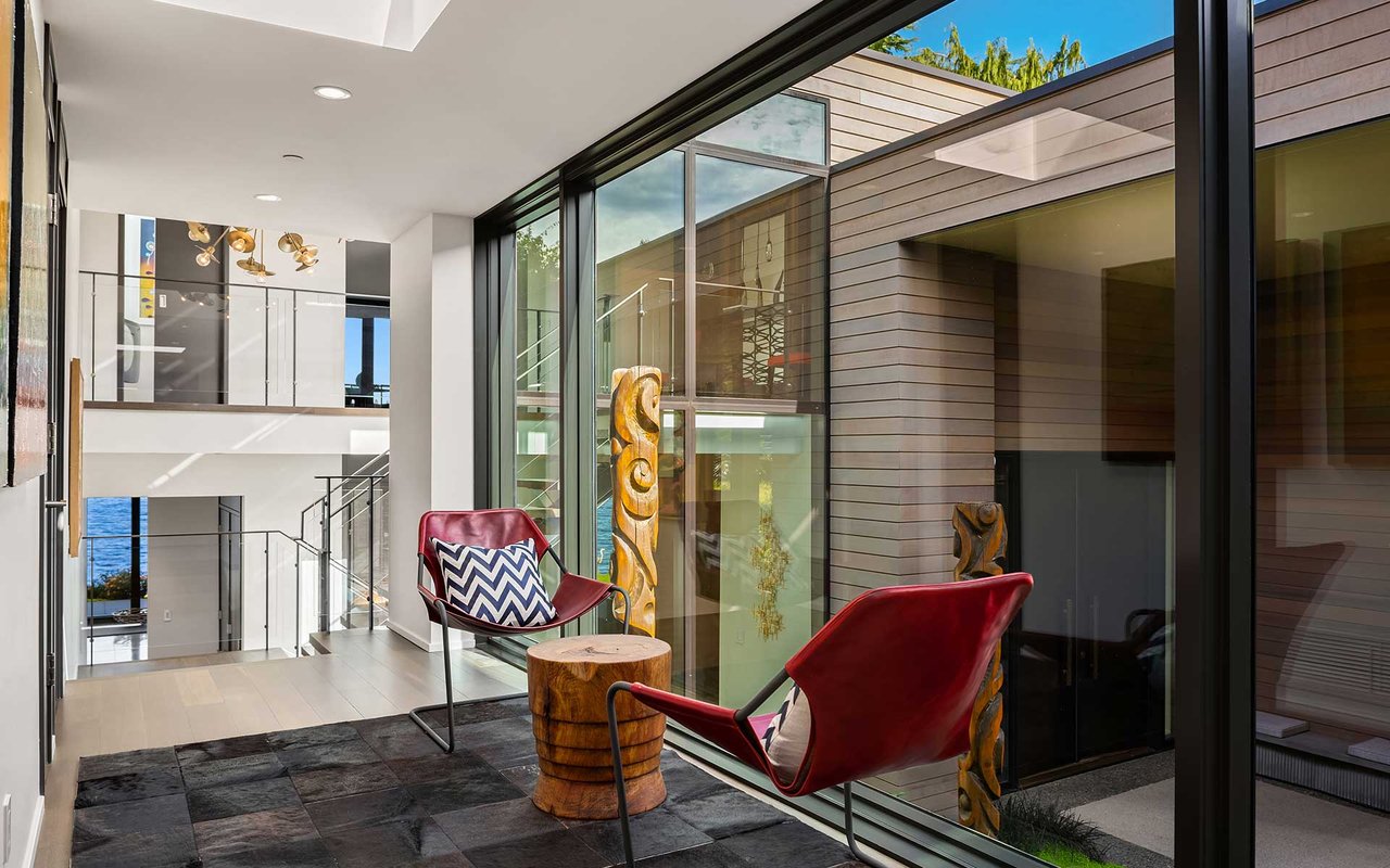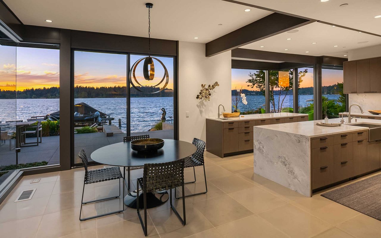 This Northwest Contemporary on 118 feet of west-facing lakefront was thoughtfully and meticulously renovated to capture the beauty of the mid-century architecture and its surroundings—where landscape, light and craftsmanship blend seamlessly. The carefully curated 2017 & 2021 renovations were a collaboration of the owners, Stuart Silk, Studio AM Architecture-Interiors, ESMB Inc., and Sander Groves Landscape. Natural materials define the architectural palette, creating a warm, inviting atmosphere. Expansive glass exposure and frameless corner windows allow sweeping views of the ever-changing lake vistas and a close connection to the natural scape. An open floor plan is ideal for effortless entertaining and everyday living, while carefully considered interiors provide quiet spots for reflection. The 19,546 square foot lot is private, peaceful and lush, and a private dock with two lifts allow you to take advantage of everything you love about lake life. This is the Island lake house you’ve been waiting for...100% move-in ready.