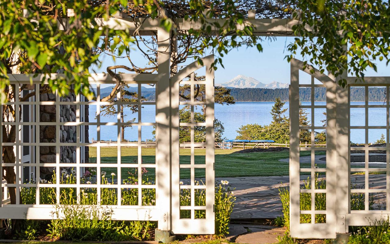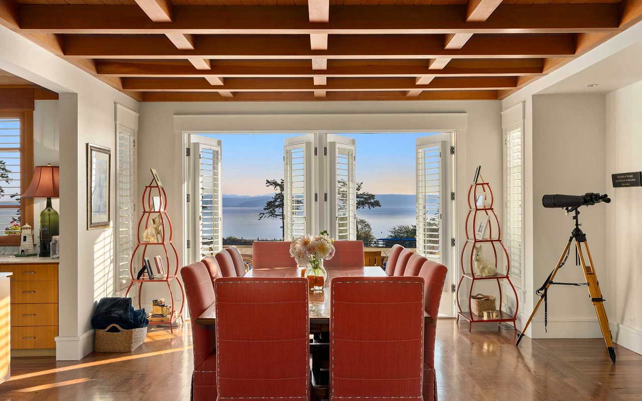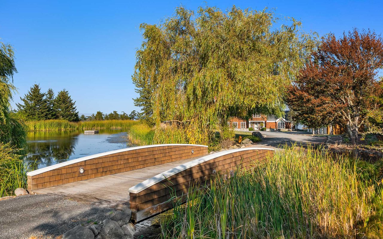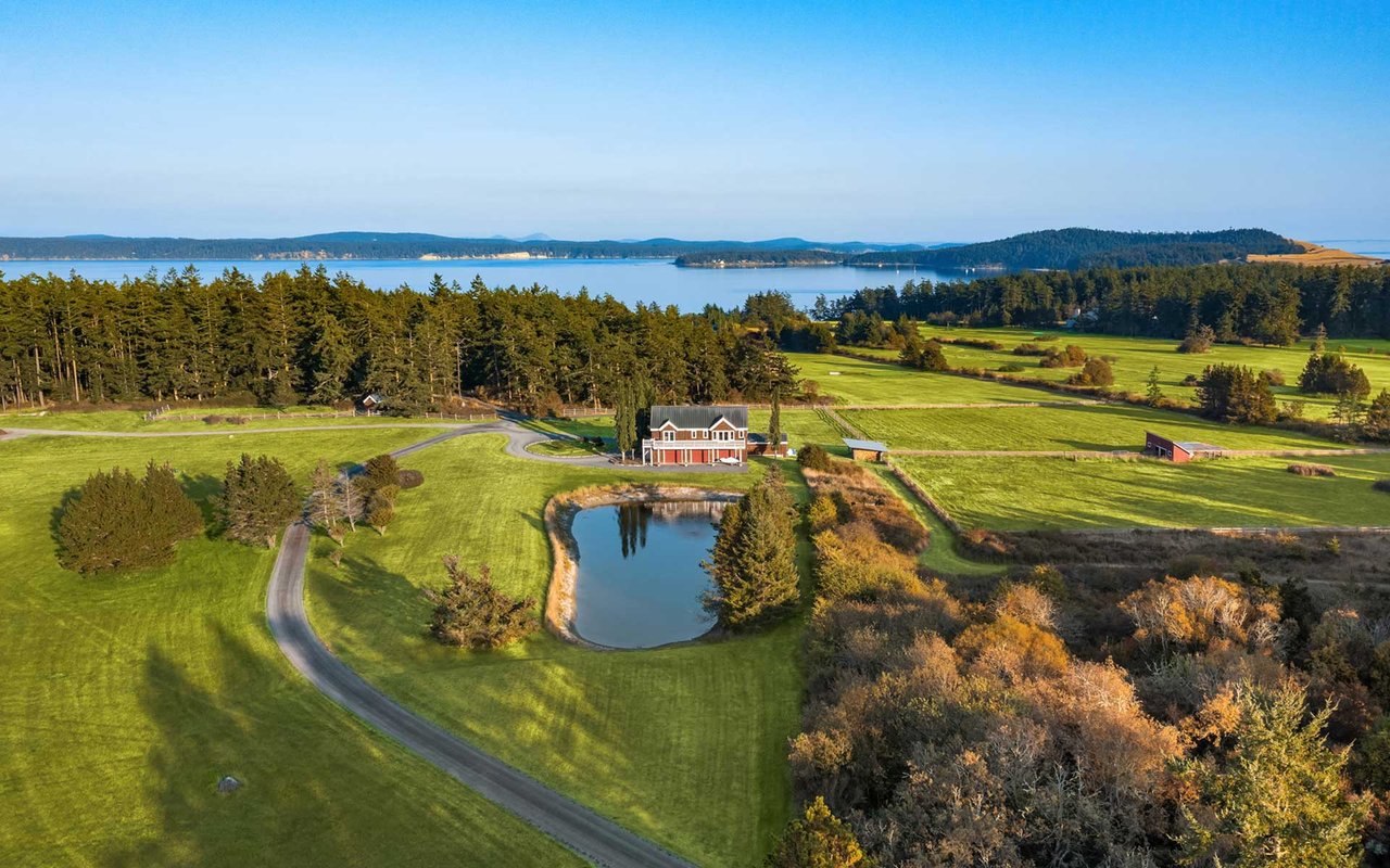 Soaring spaces and rich finishes define The Farm House, sited on 284 ft of waterfront + mooring buoy with sweeping Salish Sea and Mt. Baker views. Expansive terraces and patios (w/hot tub) for endless enjoyment of this serene and private estate. A great room with floor-to-ceiling rock fireplace is ready for hosting gatherings in beautiful coastal style. The chef's kitchen boasts two islands and accommodates several cooks. Primary suite with exercise room and dual baths, home office, private pool & spacious 3-car garage. The adjacent cottage offers a lovely, private retreat for guests. Commercial-grade buoy. Includes access to Halftide Farms amenities including a second pool, tennis + pickleball courts & game house. This is Halftide Living.