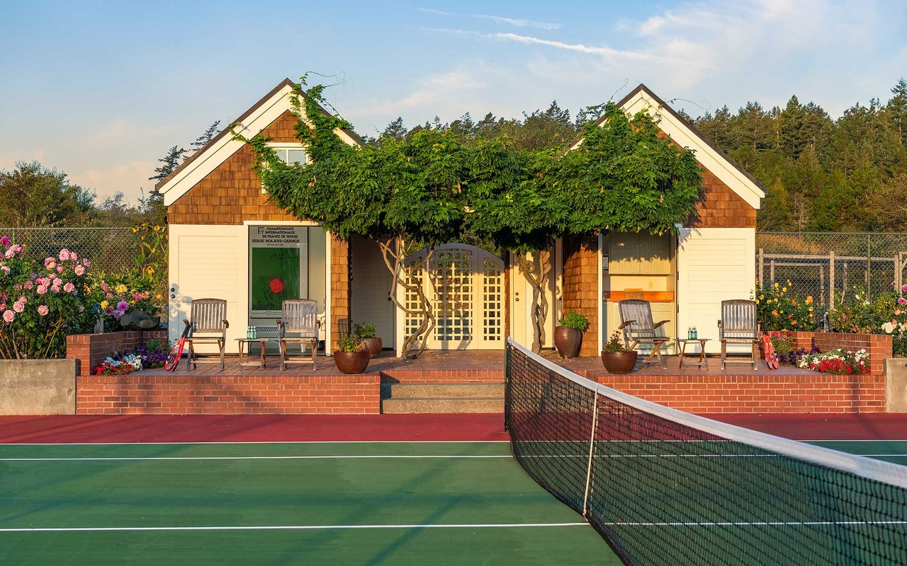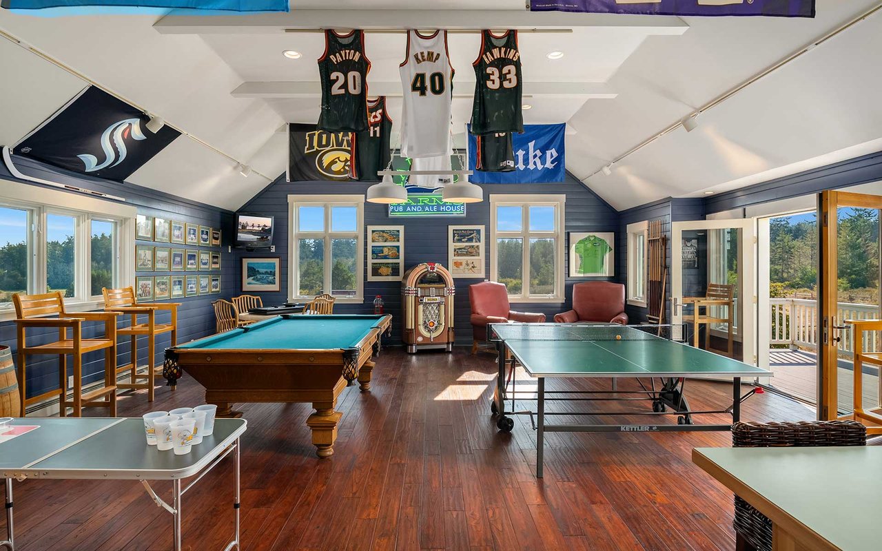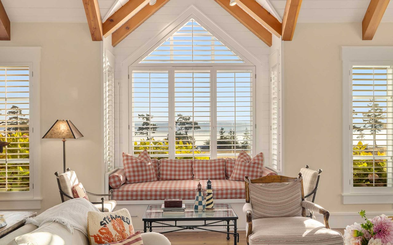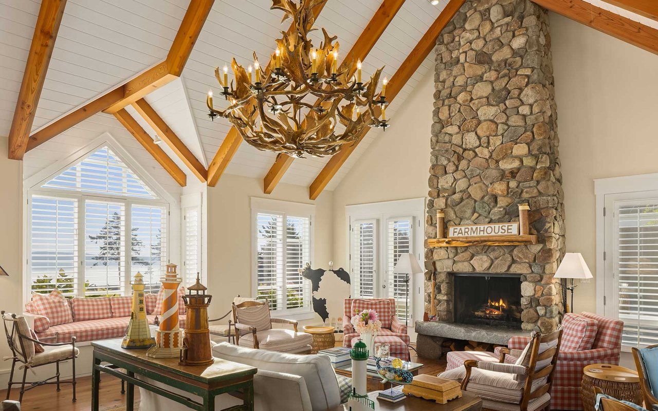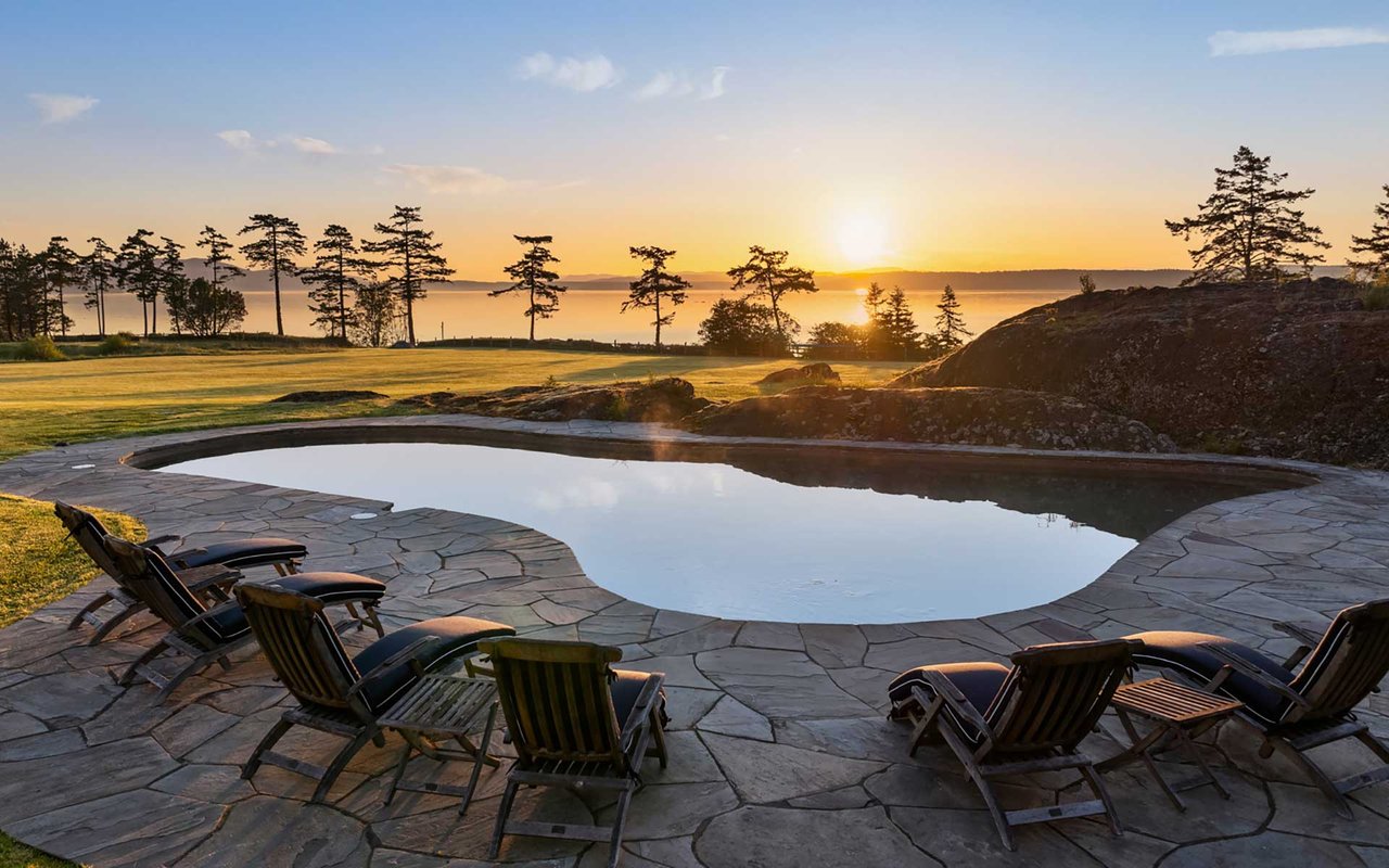Soaring spaces and rich finishes define The Farm House, sited on 284 ft of waterfront + mooring buoy with sweeping Salish Sea and Mt. Baker views. Expansive terraces and patios (w/hot tub) for endless enjoyment of this serene and private estate. A great room with floor-to-ceiling rock fireplace is ready for hosting gatherings in beautiful coastal style. The chef's kitchen boasts two islands and accommodates several cooks. Primary suite with exercise room and dual baths, home office, private pool & spacious 3-car garage. The adjacent cottage offers a lovely, private retreat for guests. Commercial-grade buoy. Includes access to Halftide Farms amenities including a second pool, tennis + pickleball courts & game house. This is Halftide Living.