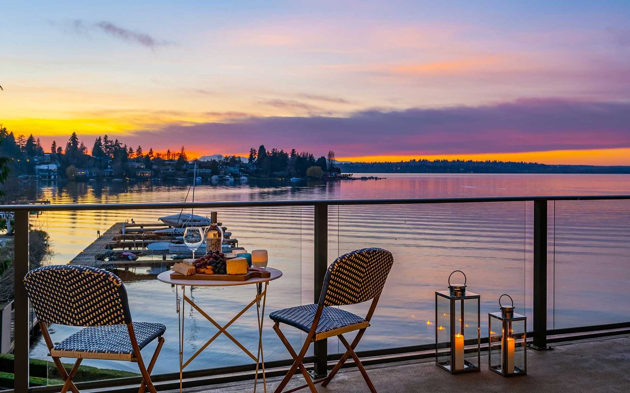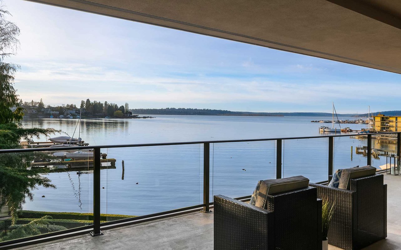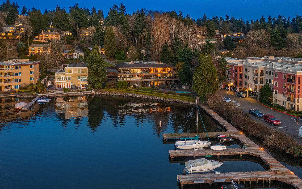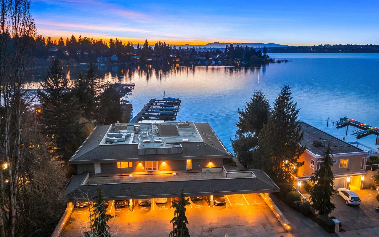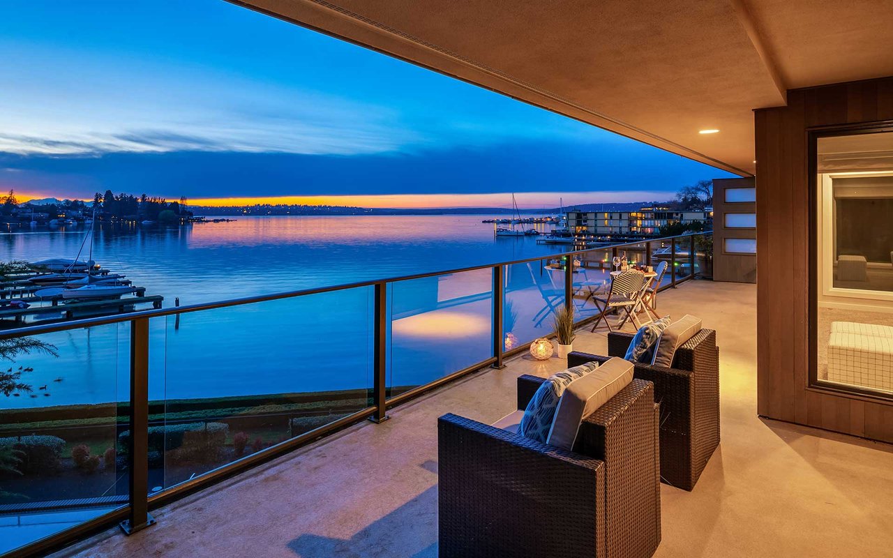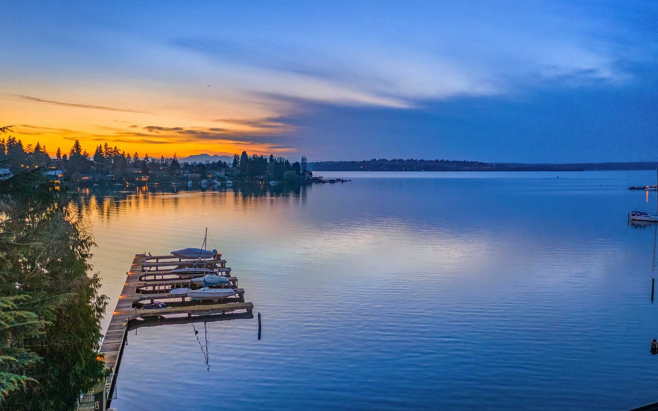 Expansive windows, clean lines, and an open floor plan allow this penthouse in Yarrow Shores to capture remarkable west-facing Lake Washington views and incredible sunsets. Prepare fabulous feasts in the gourmet kitchen with top-notch appliances while your guests gather on the huge deck and soak in the view. The view primary suite with spa-like bath is a sweet escape. An additional guest ensuite + a home office offer flexibility for those working from home. The boutique 6-unit building features a private garage, 50-foot boat slip with lift, and outdoor pool. Two garage spots and a storage room for added ease. Ideal lakeside locale close to everything this charming beach town has to offer. Stroll to Carillon Point and hop to Bellevue for even more amenities. This is Kirkland living at its best!