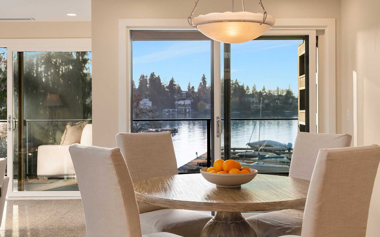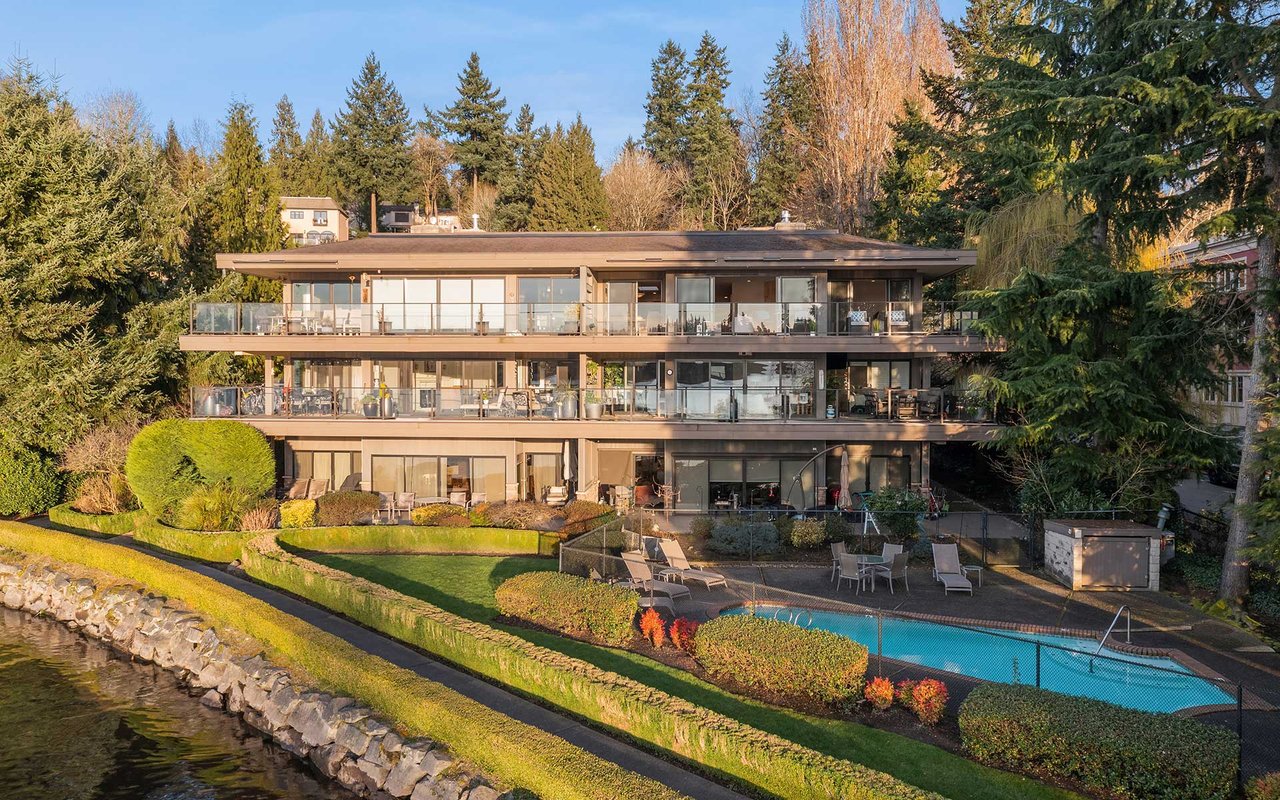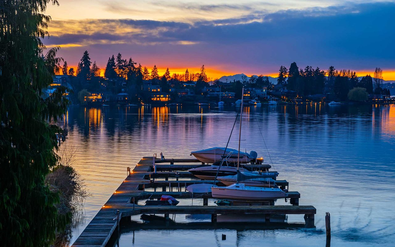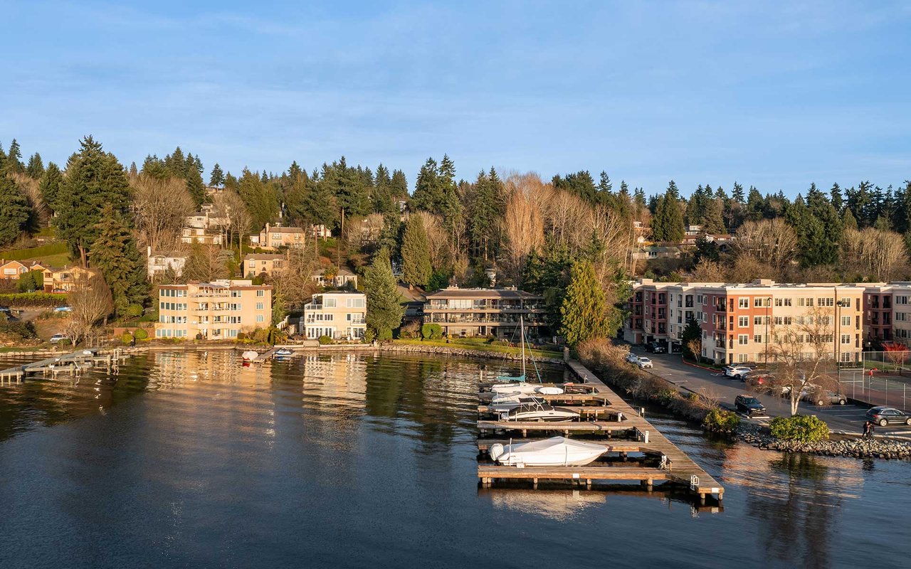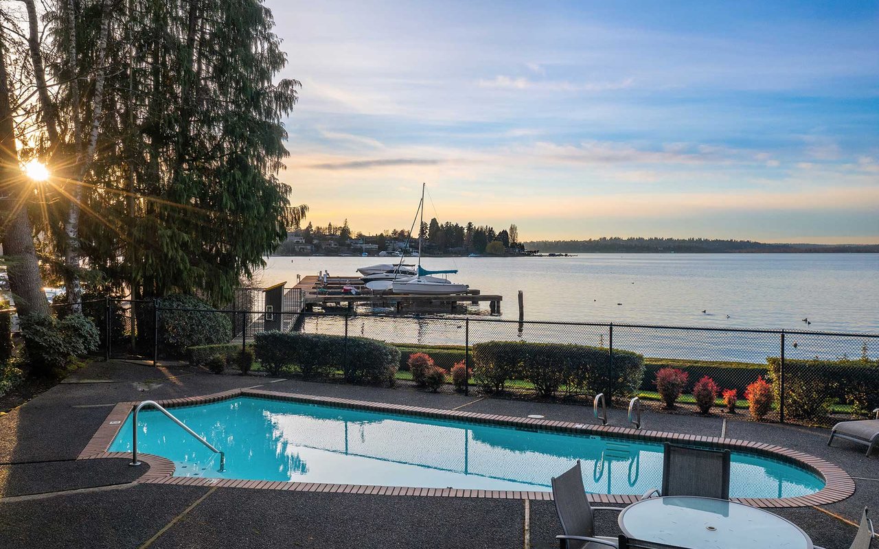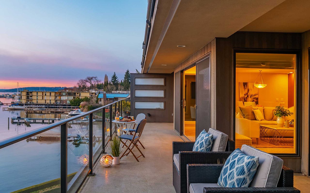 Expansive windows, clean lines, and an open floor plan allow this penthouse in Yarrow Shores to capture remarkable west-facing Lake Washington views and incredible sunsets. Prepare fabulous feasts in the gourmet kitchen with top-notch appliances while your guests gather on the huge deck and soak in the view. The view primary suite with spa-like bath is a sweet escape. An additional guest ensuite + a home office offer flexibility for those working from home. The boutique 6-unit building features a private garage, 50-foot boat slip with lift, and outdoor pool. Two garage spots and a storage room for added ease. Ideal lakeside locale close to everything this charming beach town has to offer. Stroll to Carillon Point and hop to Bellevue for even more amenities. This is Kirkland living at its best!