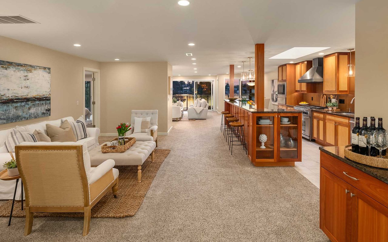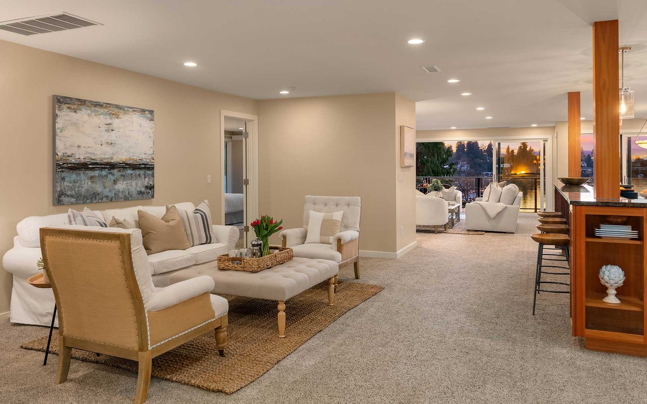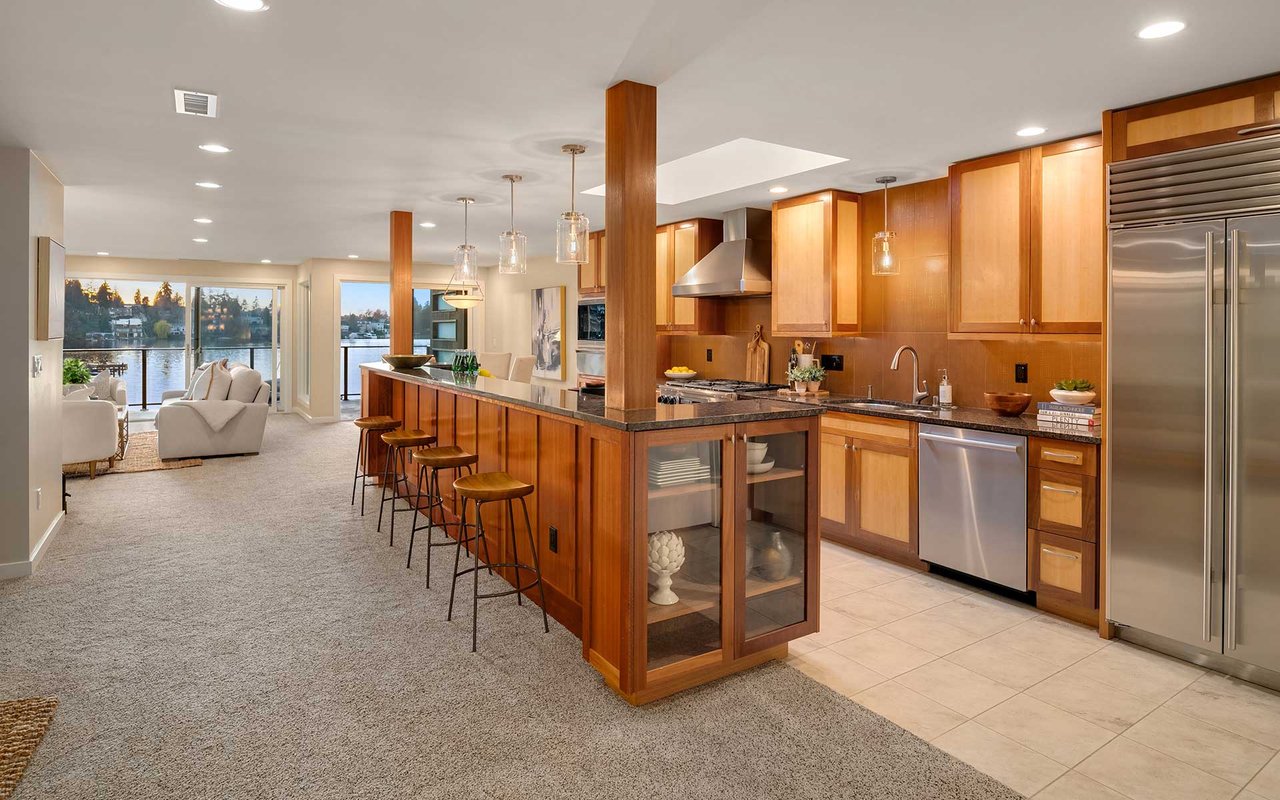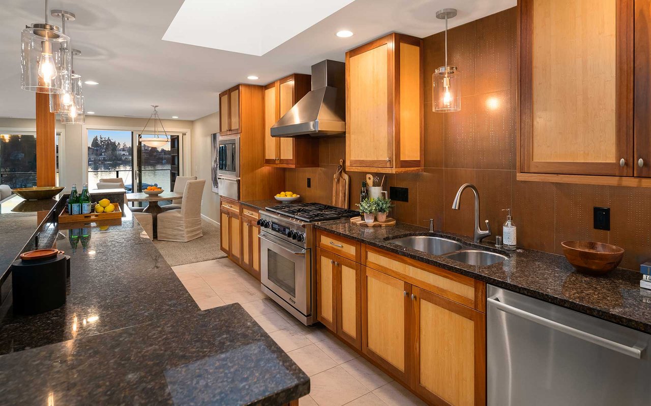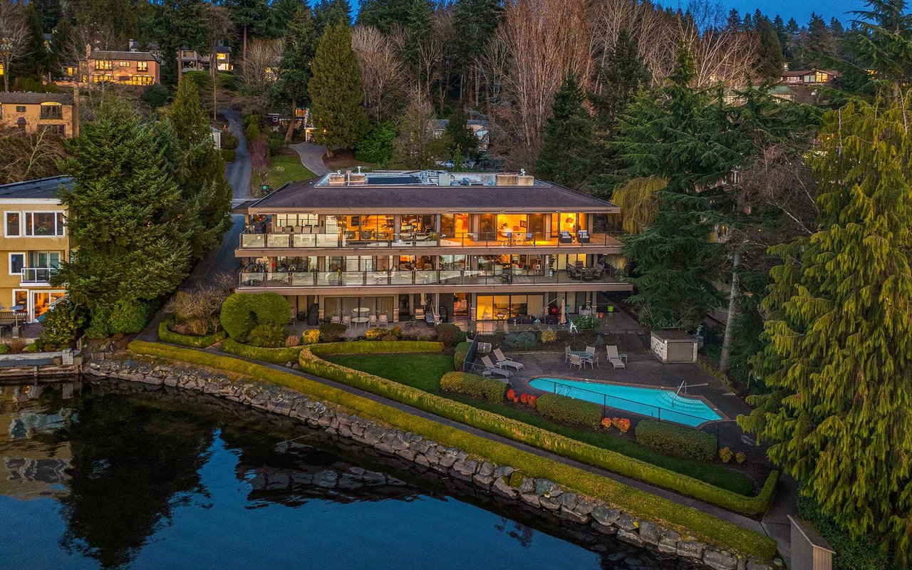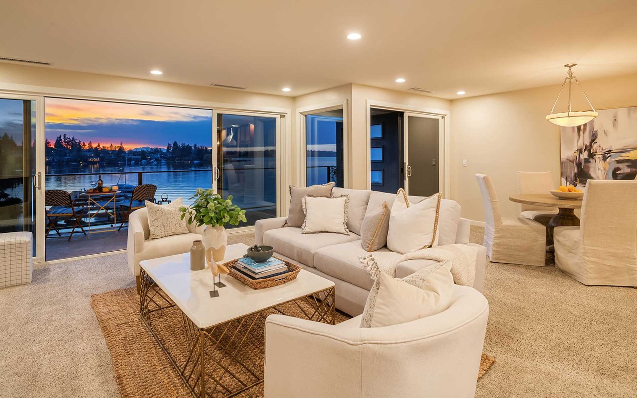 Expansive windows, clean lines, and an open floor plan allow this penthouse in Yarrow Shores to capture remarkable west-facing Lake Washington views and incredible sunsets. Prepare fabulous feasts in the gourmet kitchen with top-notch appliances while your guests gather on the huge deck and soak in the view. The view primary suite with spa-like bath is a sweet escape. An additional guest ensuite + a home office offer flexibility for those working from home. The boutique 6-unit building features a private garage, 50-foot boat slip with lift, and outdoor pool. Two garage spots and a storage room for added ease. Ideal lakeside locale close to everything this charming beach town has to offer. Stroll to Carillon Point and hop to Bellevue for even more amenities. This is Kirkland living at its best!
